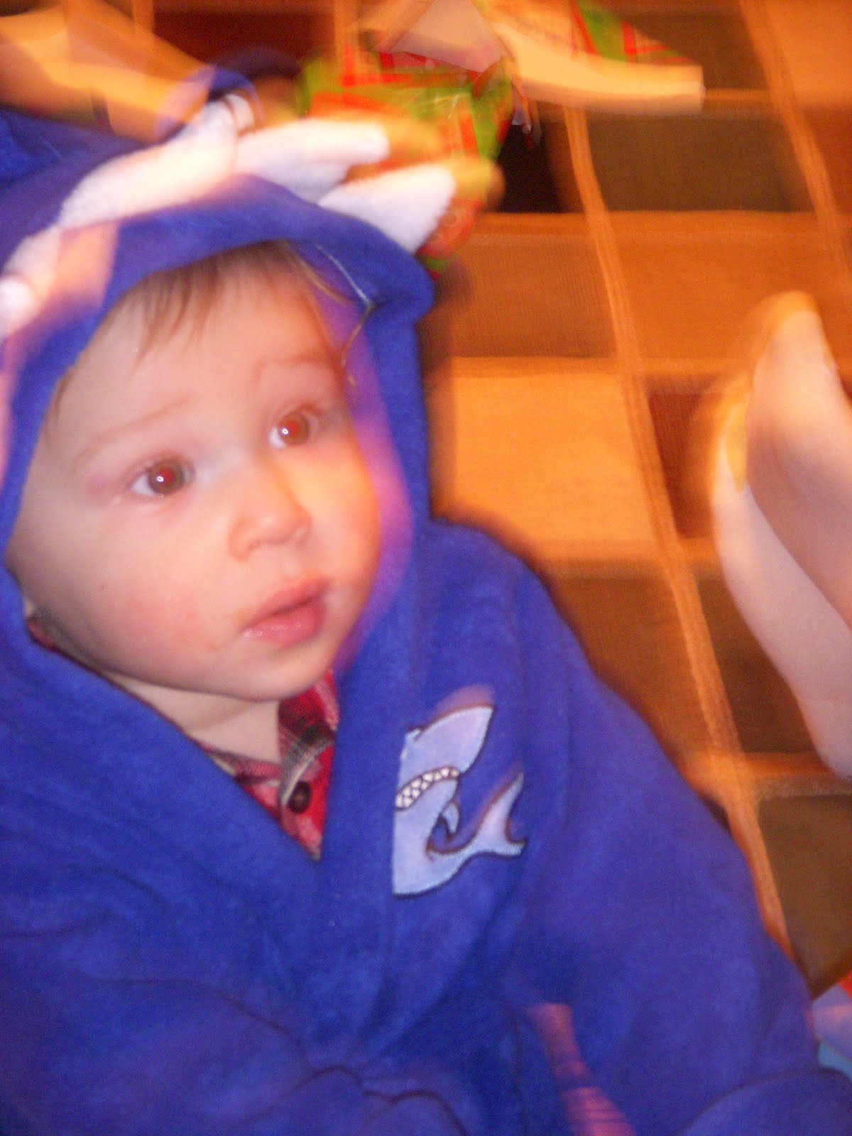He also had his first run in with little baby hives at Christmas time...we are thinking from all the animals that he was around!
